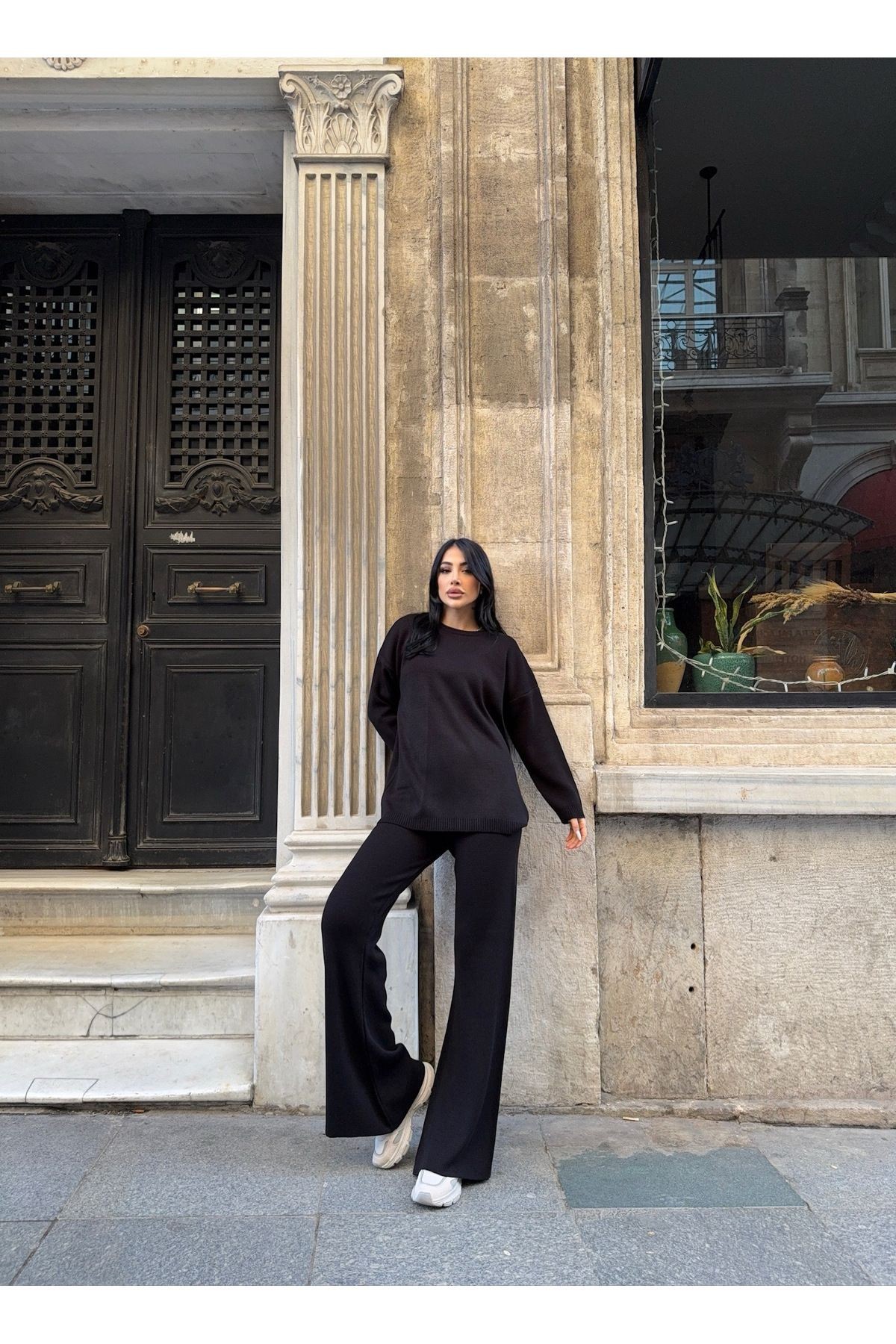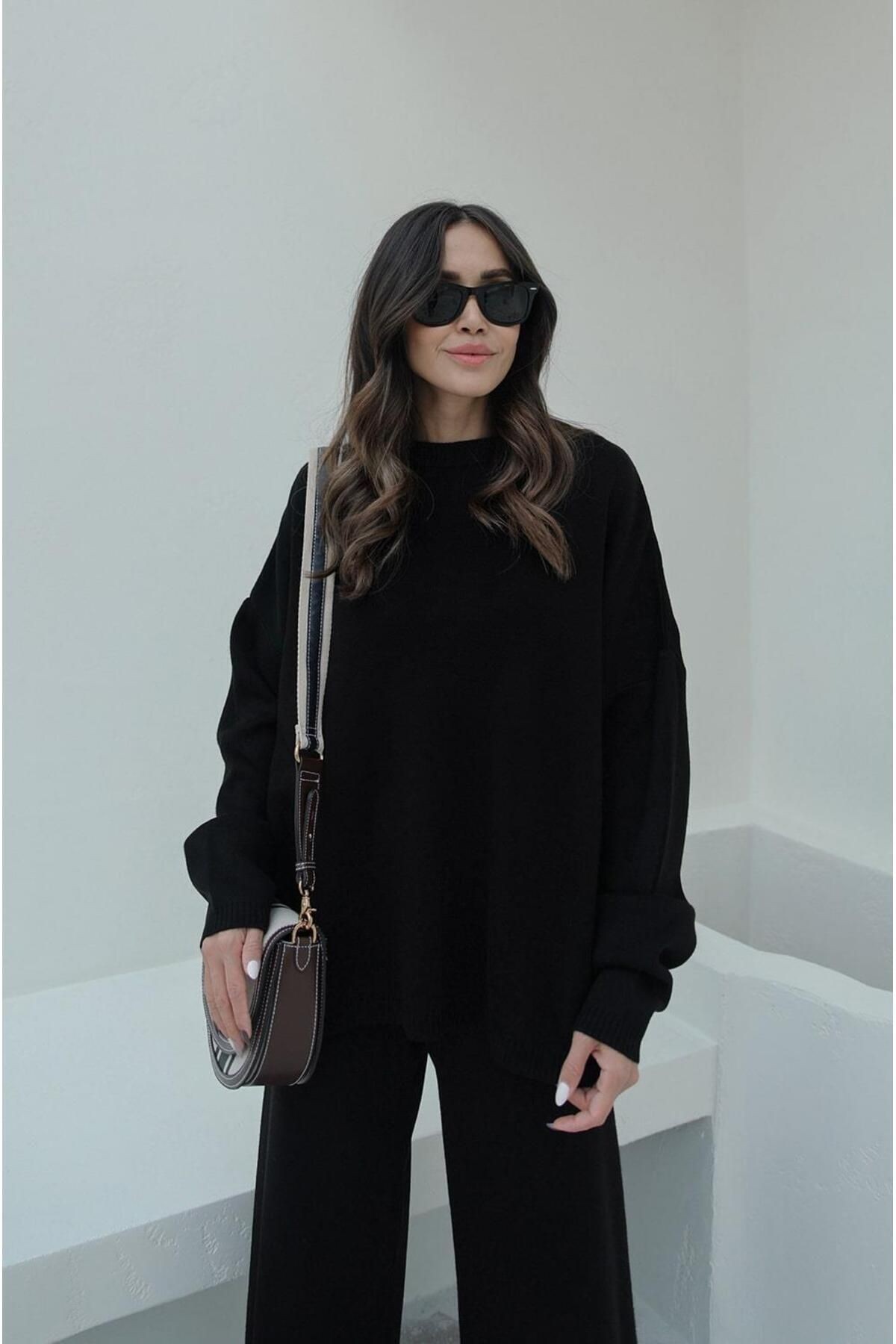 Bisiklet Yaka Kazak Pantolon Alt-üst Triko Takım
