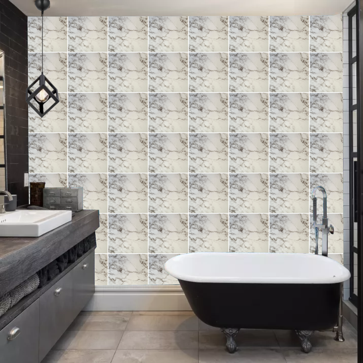 Decohandy 30x30 Cm Pvc Duvar Karosu 4'lü Paket - Siyah Beyaz Mermer