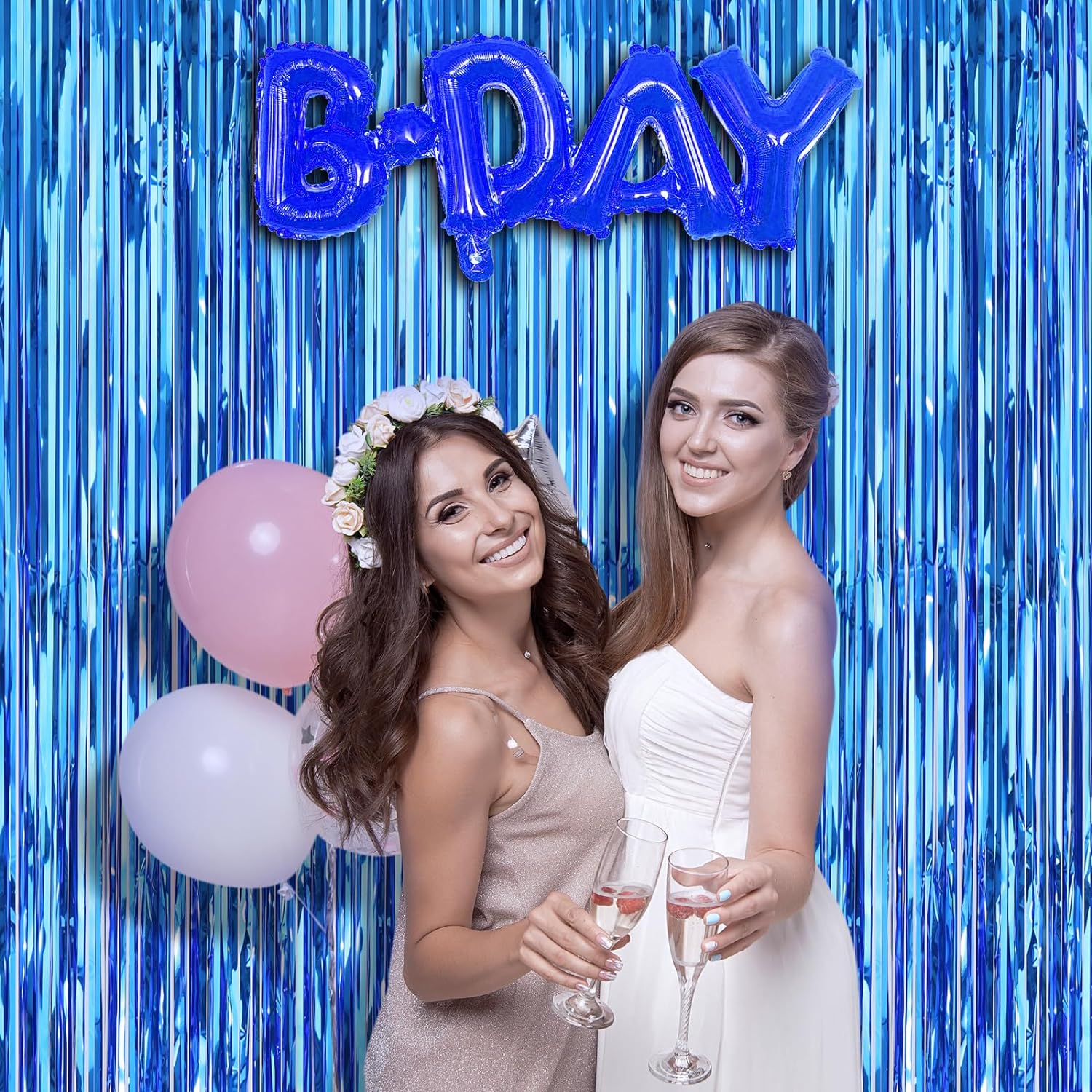 Ekstra Metalize Mavi Renk Saçaklı Arka Fon Perde 1x2 Metre