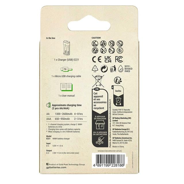 Gp Recyko E221 Usb 2'li Aa - Aaa Pil Şarj Cihazı (gpacse221004 Gpe221r21-2gtlb1)
