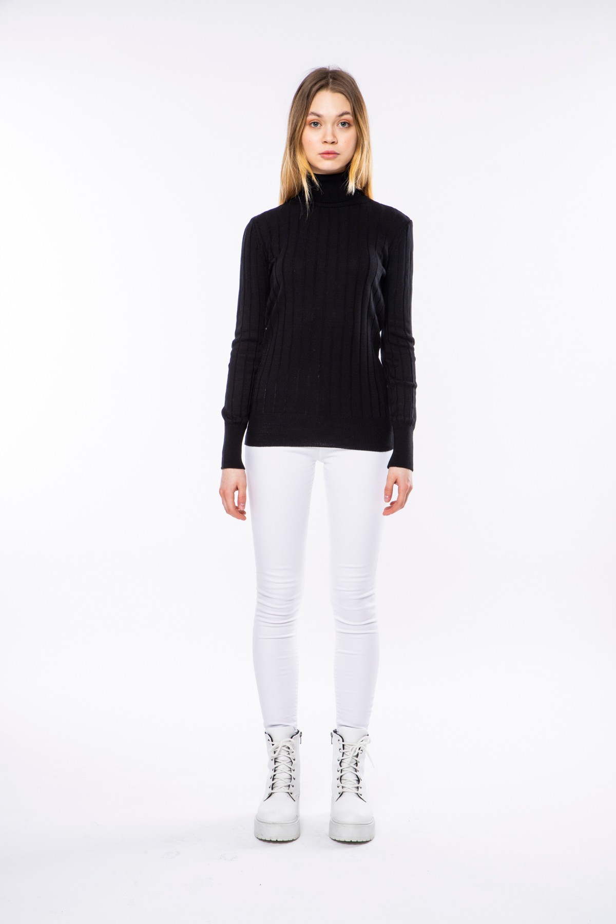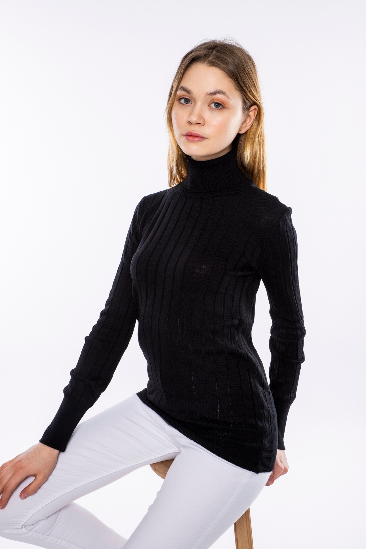Kadın Boğazlı Fitilli Triko Kazak