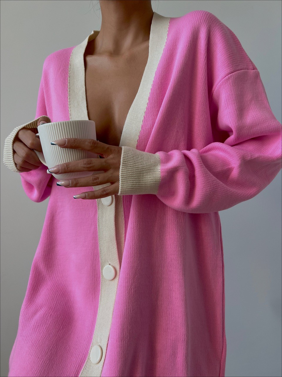 Kadın Düz Renk Oversize Triko Hırka