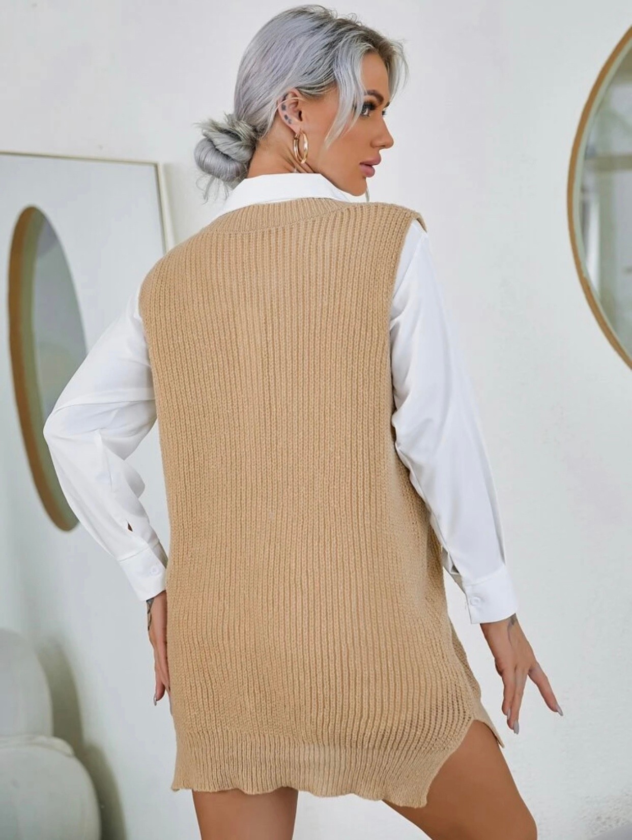 Kadın Selanik Örgü Derin V Yaka Süveter