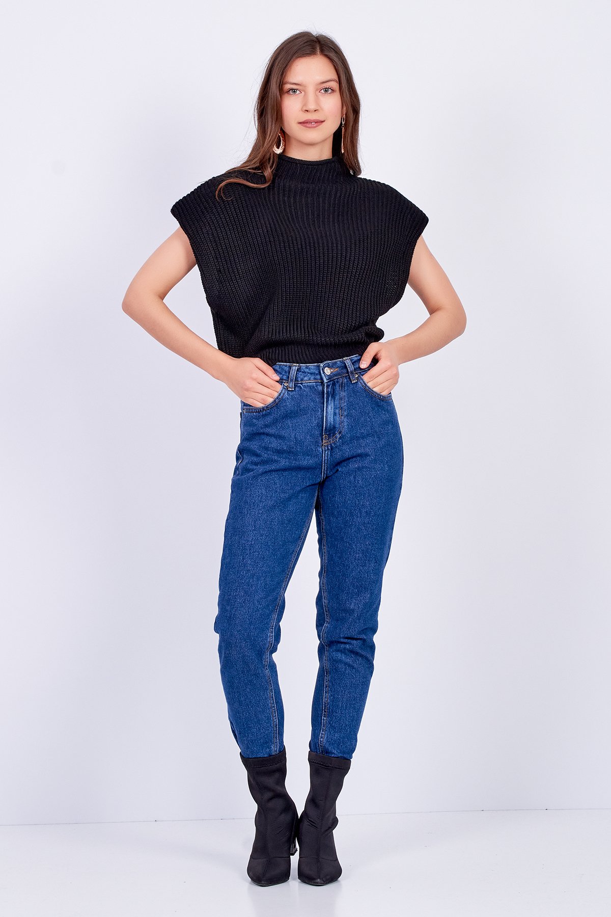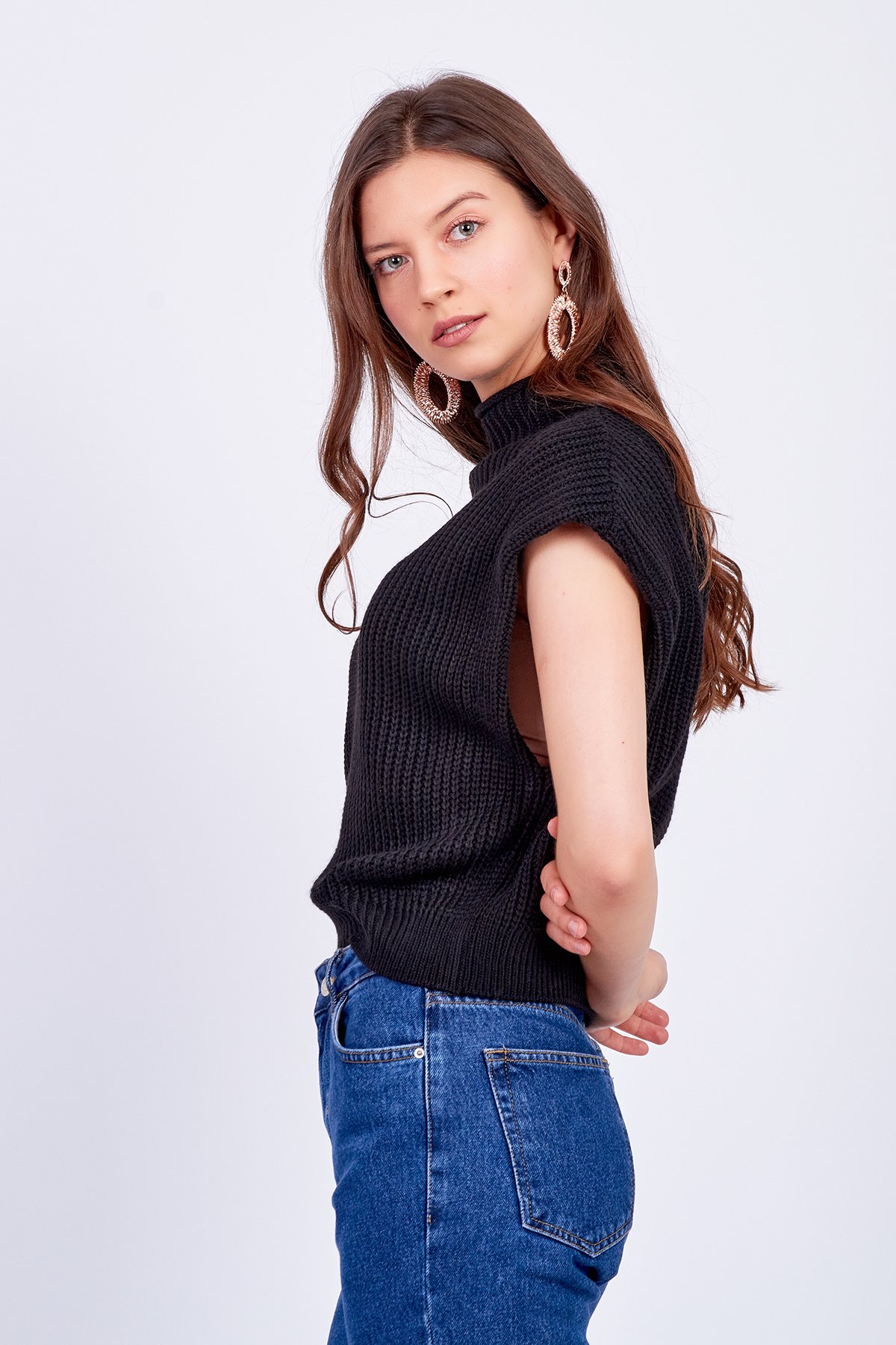 Kadın Yarım Balıkçı Yaka Vatkalı Crop Triko Kazak