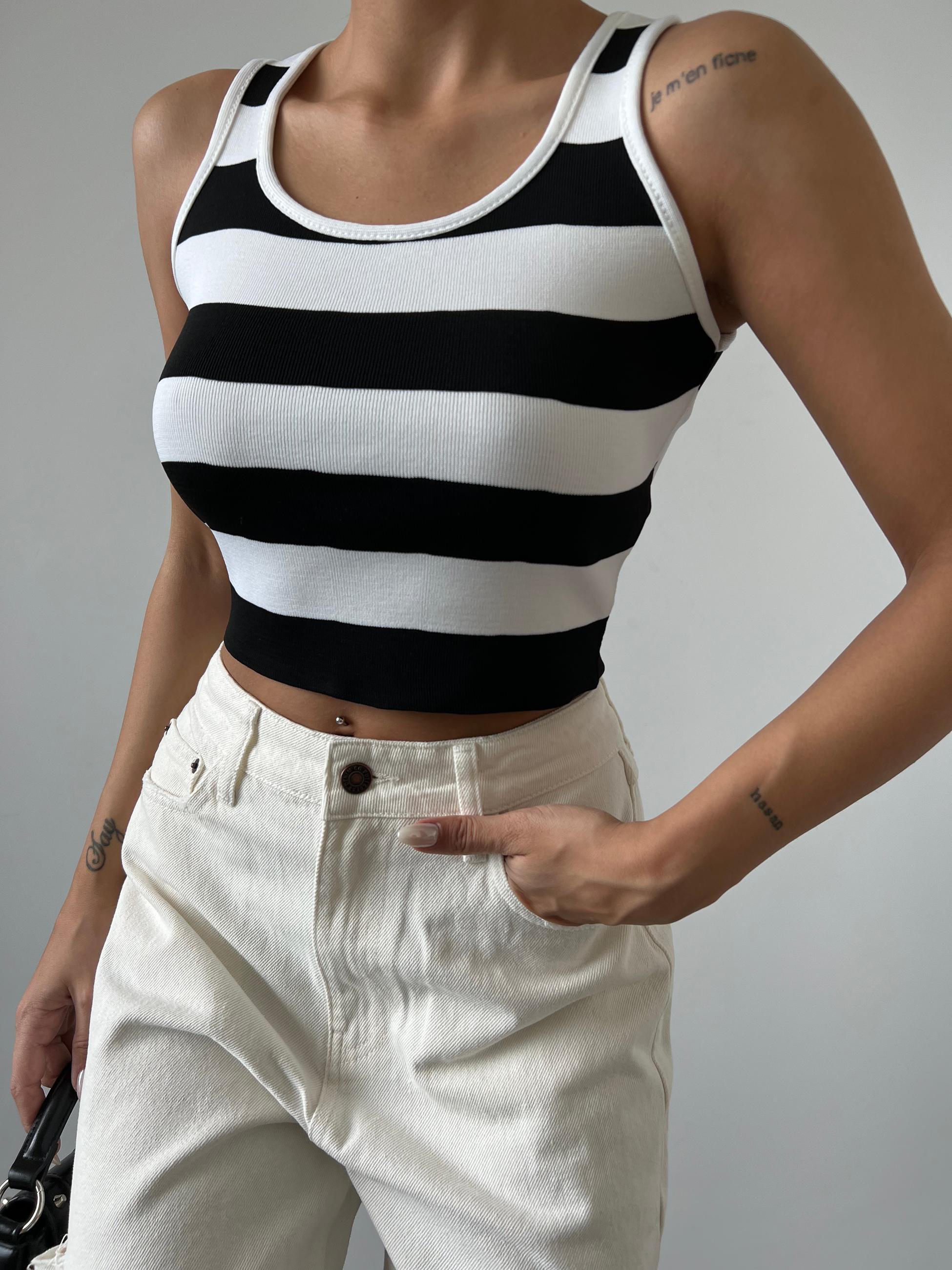 Kalın Çizgili Crop Triko Bluz