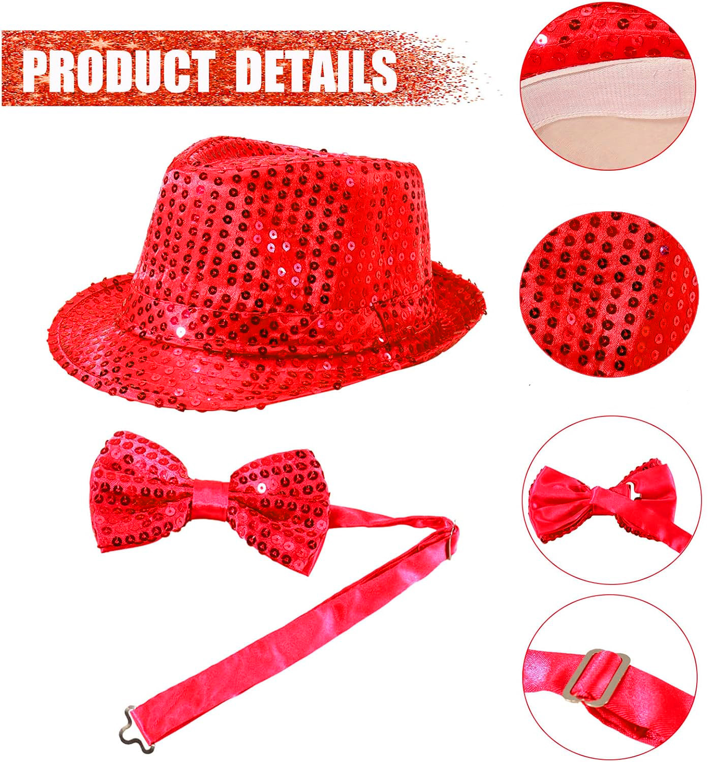 Kırmızı Payetli Şapka Ve Papyon Seti – Parıltılı Yetişkin Kostüm Seti