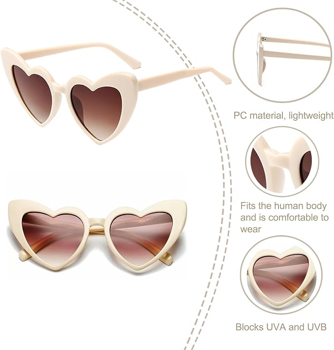Krem Renk Kalp Şekilli Parti Gözlüğü