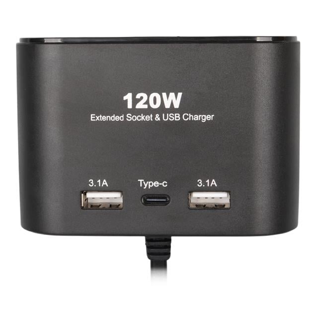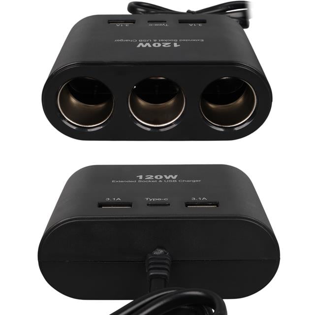 Olesson 1653 12-24v Çift Usb + Type-c Girişli 100w 70cm Kablolu 3'lü Araç Çakmak Çoklayıcı