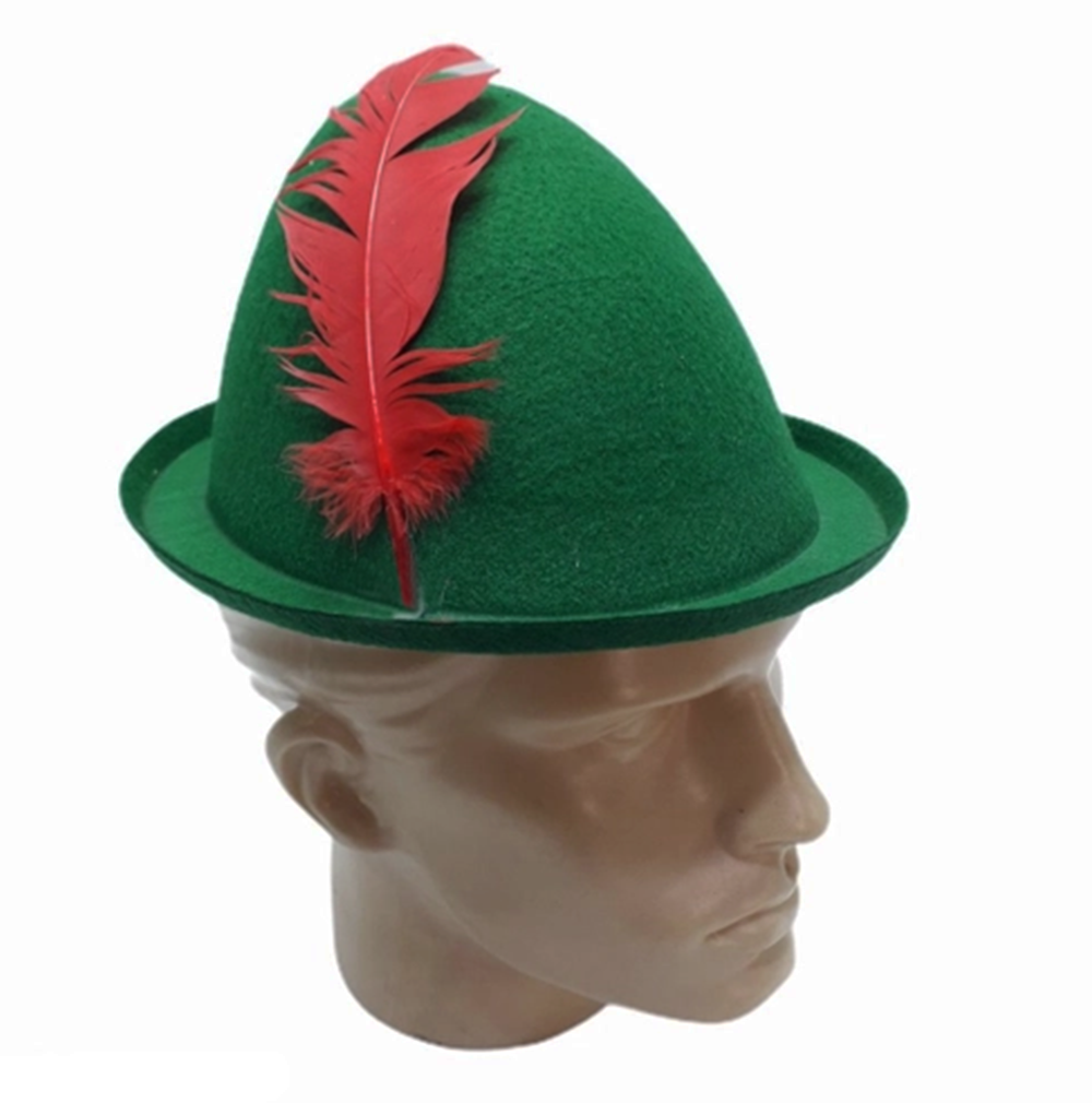 Peter Pan Şapkası Yeşil Renk Kırmızı Tüylü