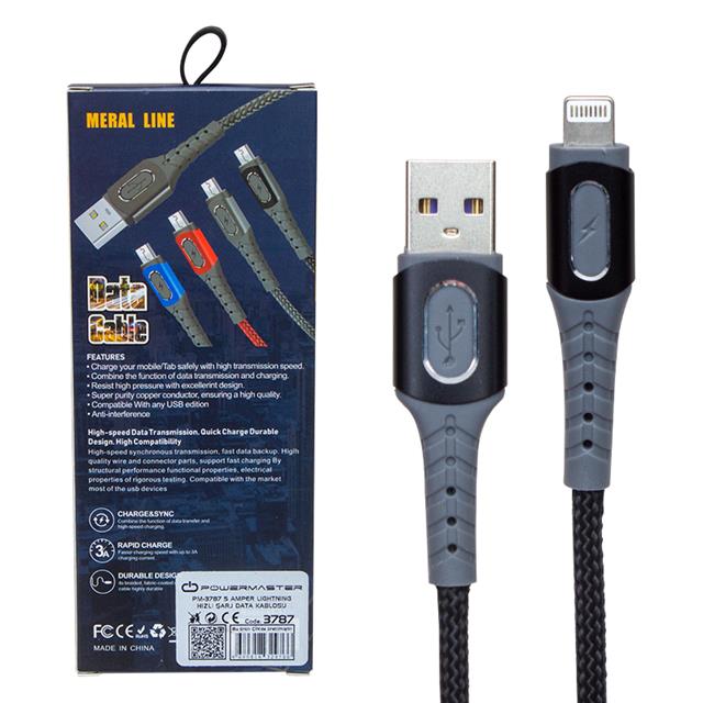 Powermaster Pm-3787 5 Amper Lightning Hızlı Şarj Data Kablosu