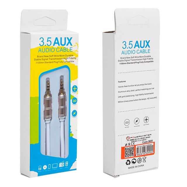 Powermaster Pm-3835 3.5 Mm 1.5 Metre Metal Başlık Stereo Aux Kablo Kalın Silikonlu (erkek/erkek)