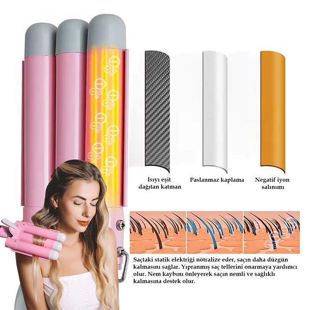 Premio T-0042 Triple Su Dalgası Profesyonel Saç Şekillendirici Maşası
