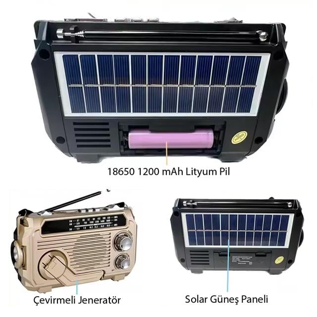 Puxing Px-777 Portatif Analog Radyo Fm-usb-sd-aux-bluetooth Lityum Pilli Solar Güneş Panelli