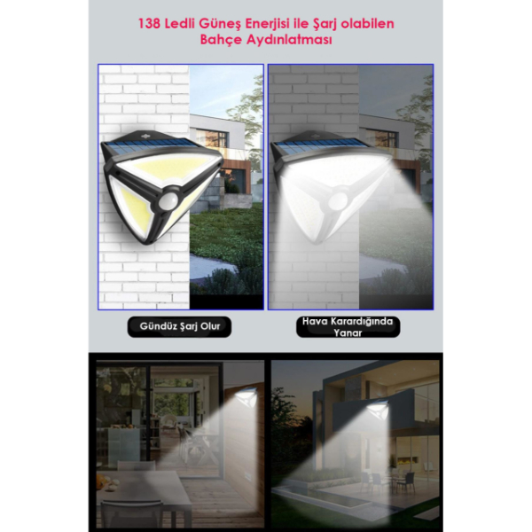 Sensörlü 138 Ledli Güneş Enerjili Solar Bahçe Lambası