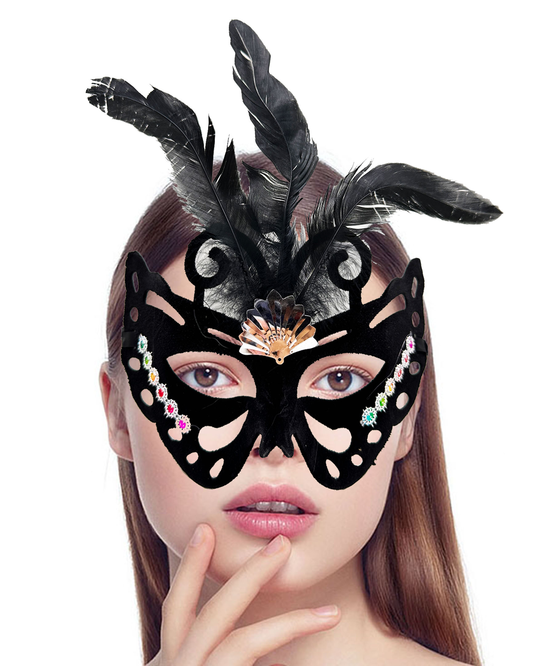 Siyah Süet Tüylü Kelebek Figür Parti Maskesi