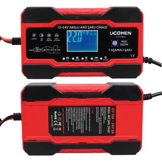 Ucomen Uc-c121001a Kırmızı 12/24 Volt 10 Amper Led Göstergeli Akü Şarj Cihazı