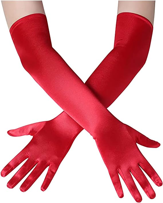 Uzun Boy Ekstra Parlak Saten Eldiven Kırmızı Renk