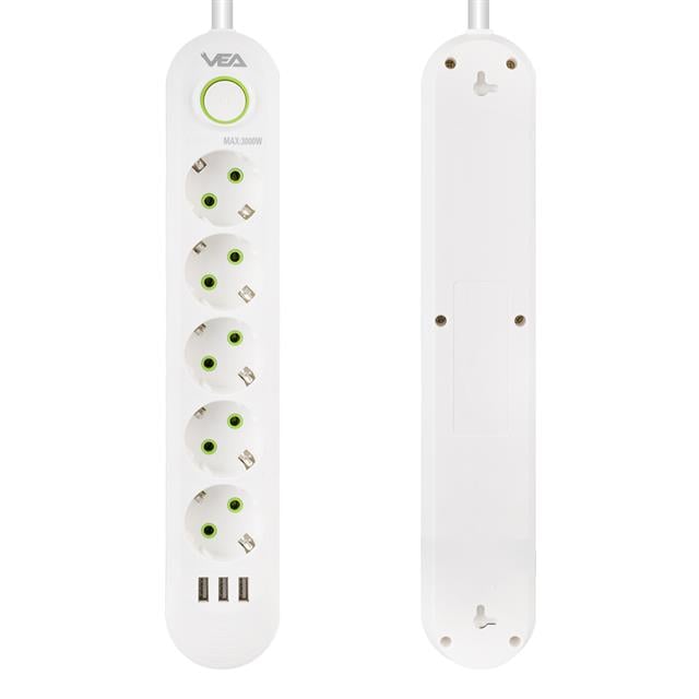 Vea Va-21562 5'li 3 Usb'li 1.5 Metre Akım Korumalı Priz Beyaz