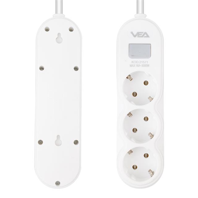 Vea Va-21571 3'lü Anahtarlı 1.5 Metre Akım Korumalı Priz Beyaz