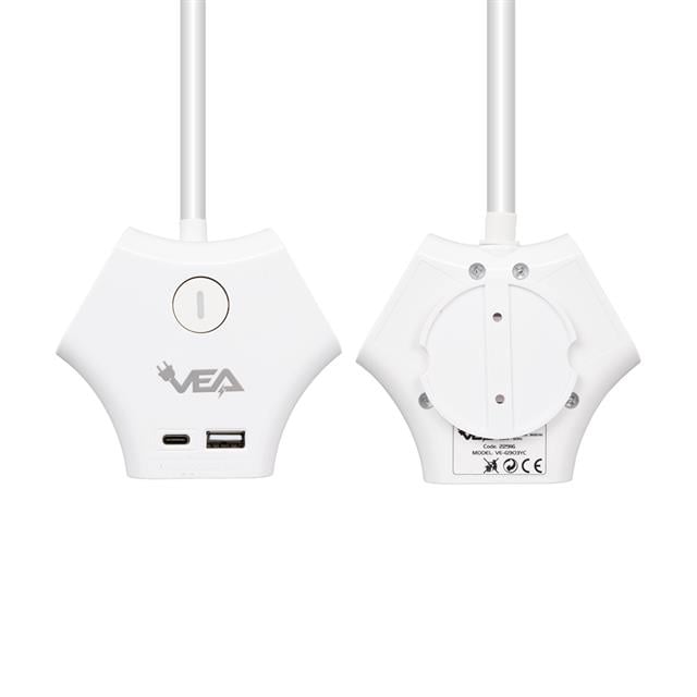 Vea Ve-g903yc 3'lü Usb+ Type-c Girişli Anahtarlı 1.5 Metre Grup Priz