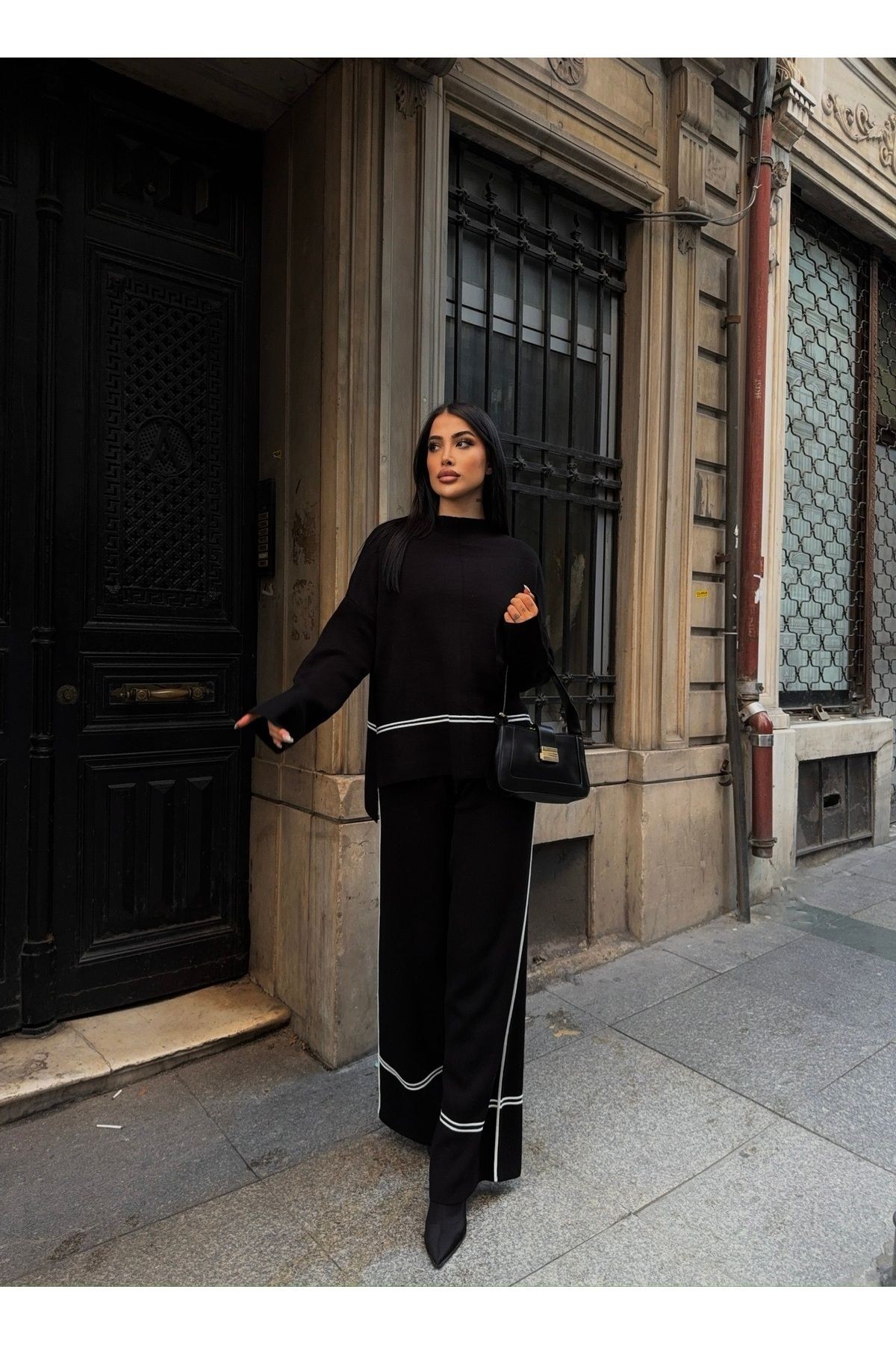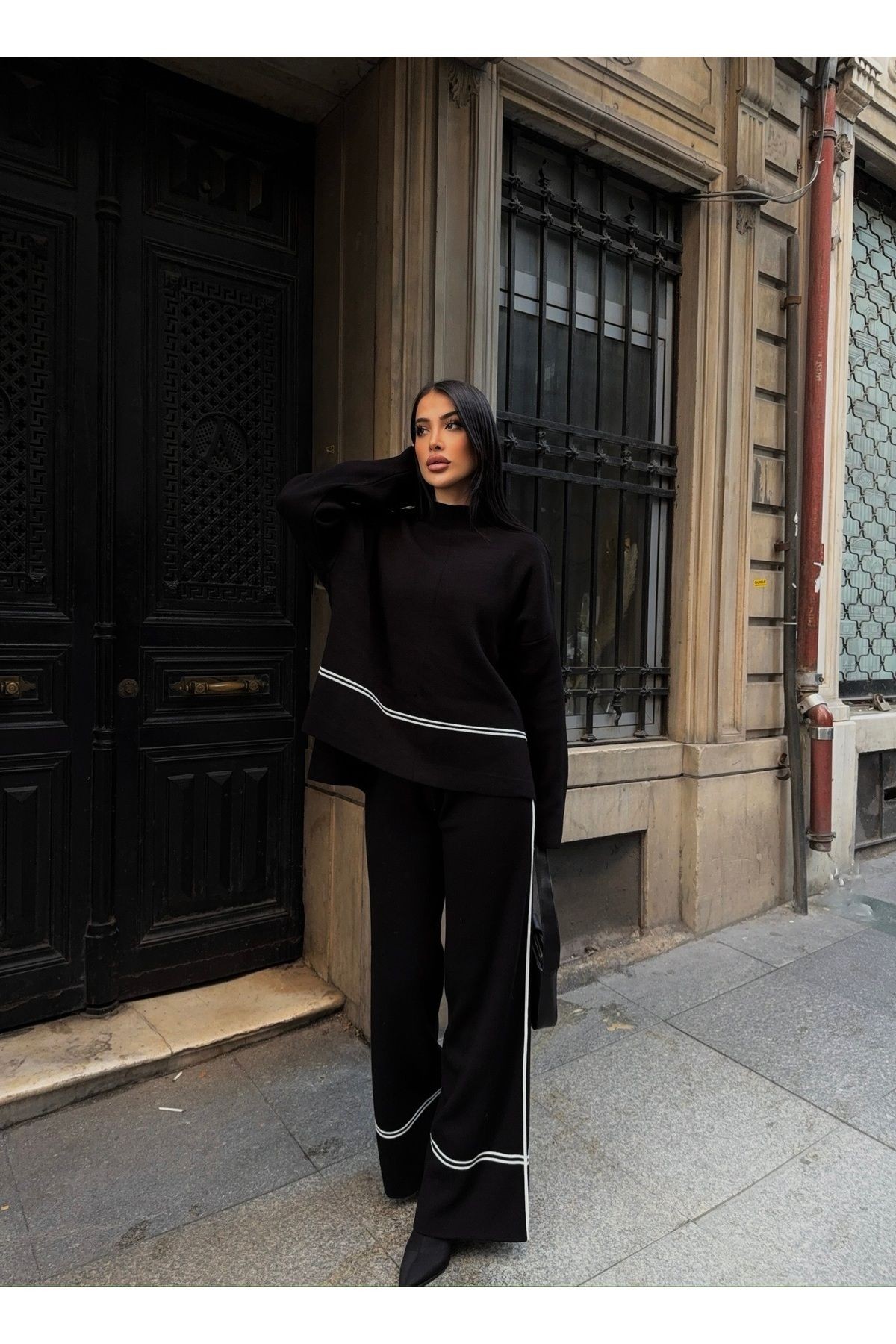Yarım Balıkçı Çizgi Detay Triko Takım