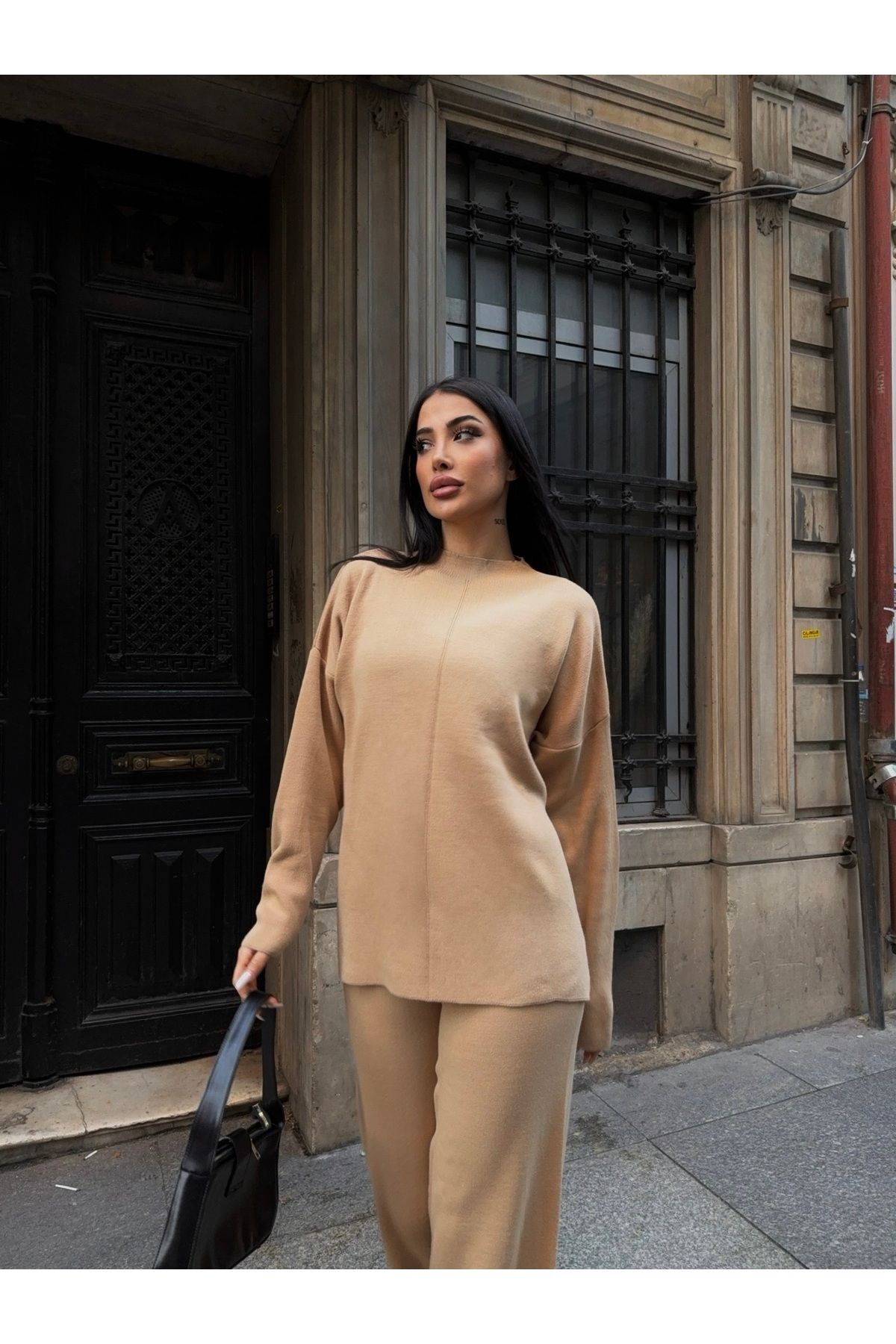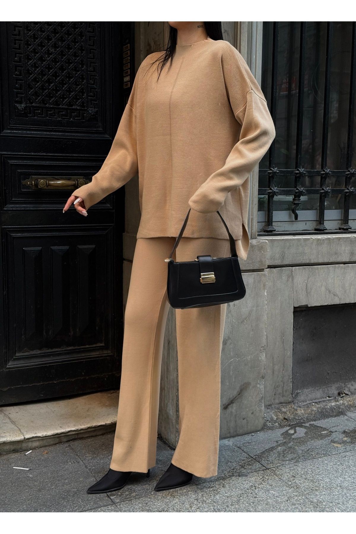 Yarım Balıkçı Yaka Yırtmaç Detaylı Alt-üst Triko Takım